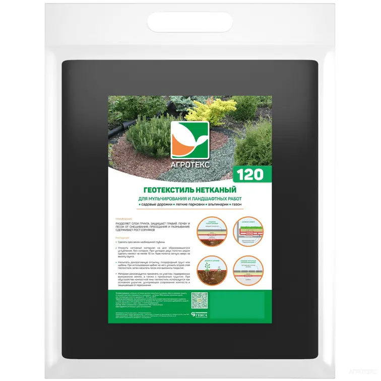 Садовый геотекстиль «Агротекс Гео» позволяет реже восстанавливать плодородный слой почвы и декоративной отсыпки, снижает частоту проведения ремонта садовых дорожек, альпинариев и газонов, сдерживает рост сорняков.