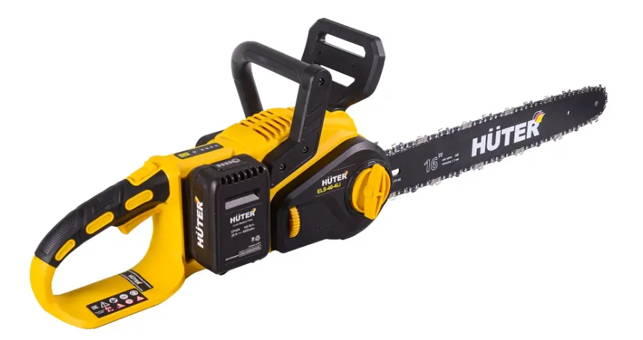Аккумуляторная цепная пила Huter ELS-40-4li имеет прорезиненную рукоятку, что обеспечивает удобство и надежность в работе. Для безопасности оператора предусмотрена защита от случайного пуска и защитный кожух цепи.