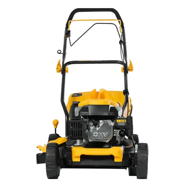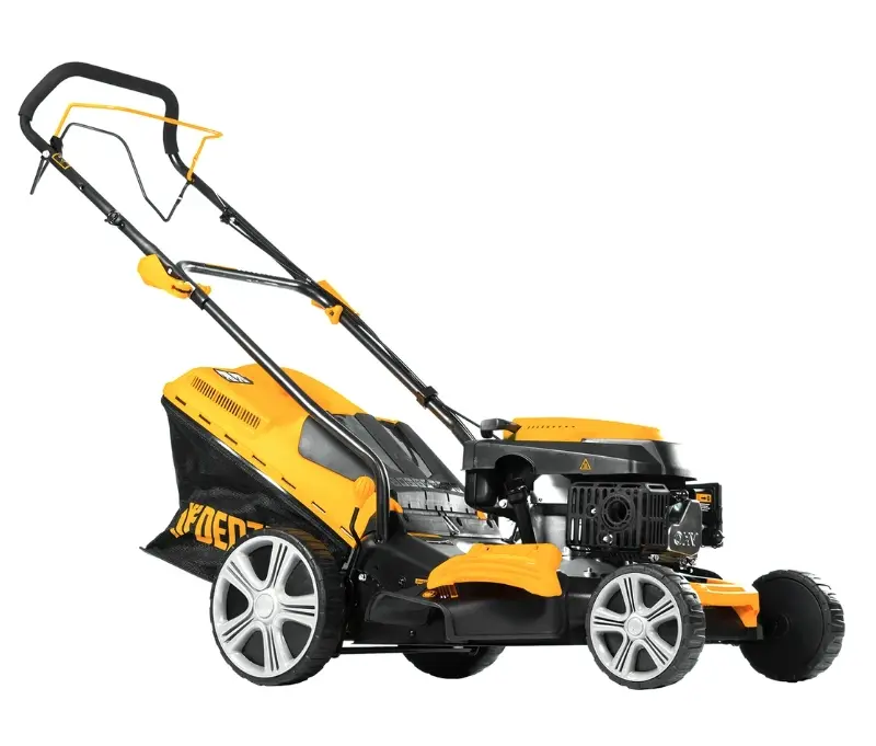 Комплектация: газонокосилка бензиновая - 1 шт., травосборник - 1 шт., рукоятка - 1 шт., дефлектор бокового выброса - 1 шт., заглушка для мульчирования - 1 шт., комплект крепежа - 1 шт., комплект инструментов - 1 шт., руководство по эксплуатации с гарантийным талоном - 1 шт., коробка.