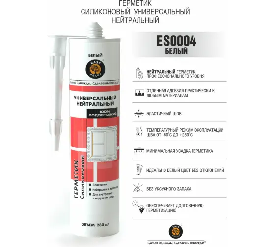 Универсальный силиконовый герметик EAST BRAND нейтральный, белый, 280 мл ES0004 - это высококачественный силиконовый герметик с нейтральной системой отверждения применяется при общих бытовых, ремонтных и строительных работах.