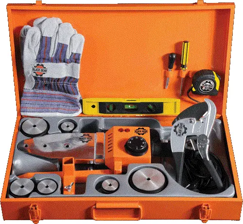 Паяльник Black Gear BG-99501 предназначен для соединения полипропиленовых труб и фитингов при монтаже трубопроводов для систем водоснабжения и канализации. Сварочный аппарат мощностью 1600 Вт и температурой нагрева 0-300°C с мечевидной нагревательной пластиной имеет в комплекте насадки для работы с трубами диаметром 20, 25, 32, 40, 50 и 63 мм, ножницы для резки труб, вспомогательный инструмент и перчатки. Гарантия 18 месяцев.