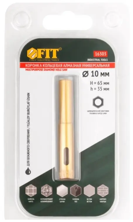 Коронка кольцевая предназначена для вырезания круговых отверстий в керамограните, кафельной плитке, бетоне, граните, мраморе, камне, кирпиче и стекле.