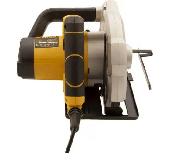 Безопасность — подвижный защитный кожух закрывает верхнюю часть пильного диска и исключает контакт с лезвием после отключения пилы кожух полностью изолирует диск от внешних воздействий.