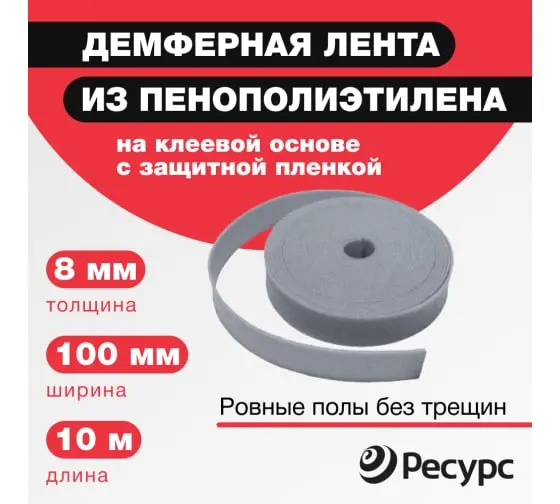Эластичная лента средней плотности из пенополиэтилена. Высокоэффективный термо- и звукоизоляционный материал. Укладывается по кромке напольной бетонной стяжки в качестве компенсатора ее линейного расширения при обустройстве теплых и плавающих полов. Благодаря наличию клеевого слоя проста в укладке, надежно крепится к поверхности стены.