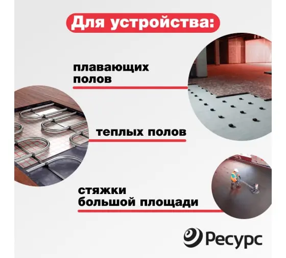 Применима для: обустройства теплых полов всех типов; плавающих полов; бетонных стяжек под напольные покрытия всех типов.