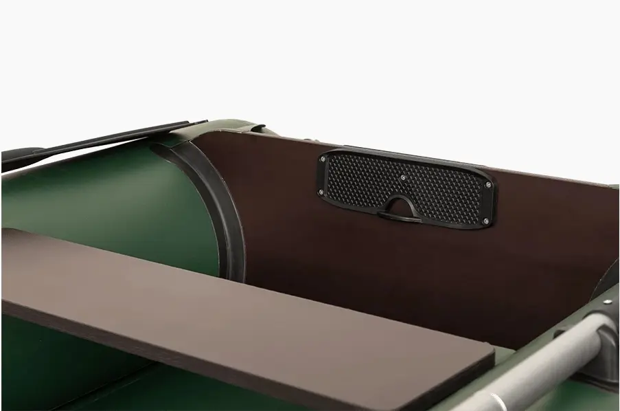 Лодка комплектуется легкими алюминиевыми веслами со съемной лопастью. Весла устанавливаются в эффективные поворотные уключины, значительно облегчающие процесс гребли.
