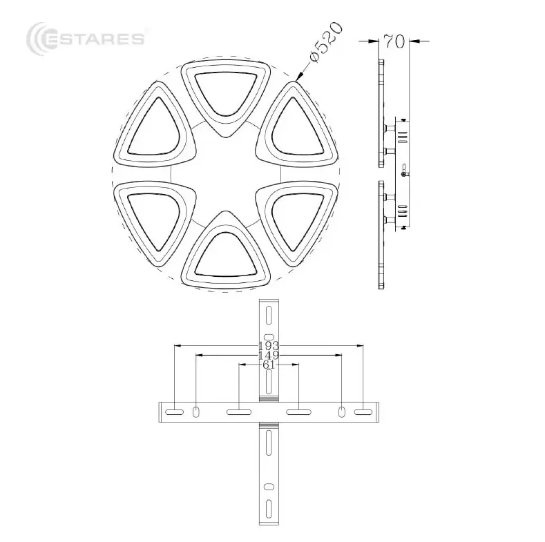 Корпус металл, рассеиватель акрил, драйвер встроен, крепление на скобу, пульт 2,4G.