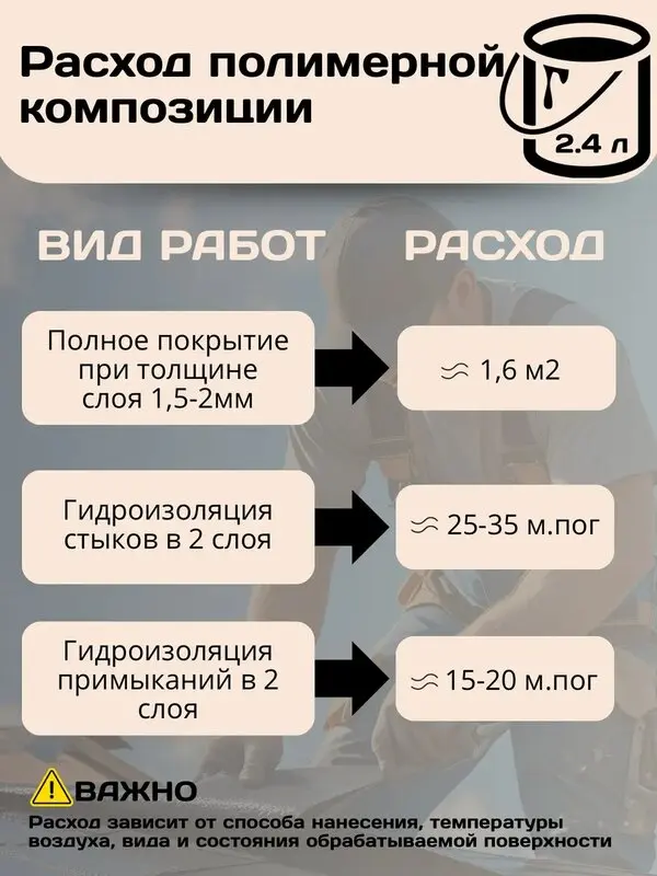 Водовытесняющая Полимерная Композиция "Жидкая Кровля–быстрый ремонт" специально разработана для оперативного устранения протечек крыш в любое время года, при любых погодных условиях. Ремонт протечек возможен во время дождя, мокрого снега и под слоем воды.Композиция восстанавливает эластичность и гидроизолирующие свойства старых кровельных покрытий. Применима для приклейки рулонных материалов.