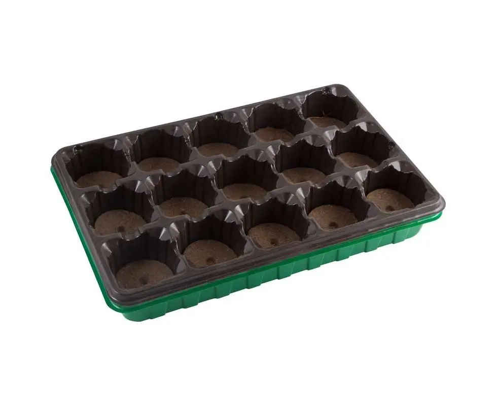 Комплектующие: лоток, кассета 15 ячеек, таблетки торфяные, размер d 5 см.