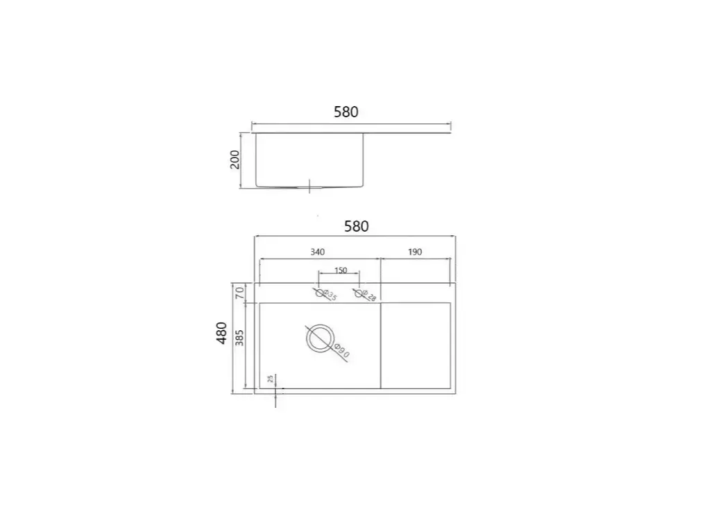 Мойка врезная 580х480мм, толщина основания 3,0 мм, чаша 0,8 мм, глубина 220 мм + большой сифон с переливом. Сифон с углубленной горловиной, мусоросборником и крышкой. Чаша мойки полностью шумоизоляционная.