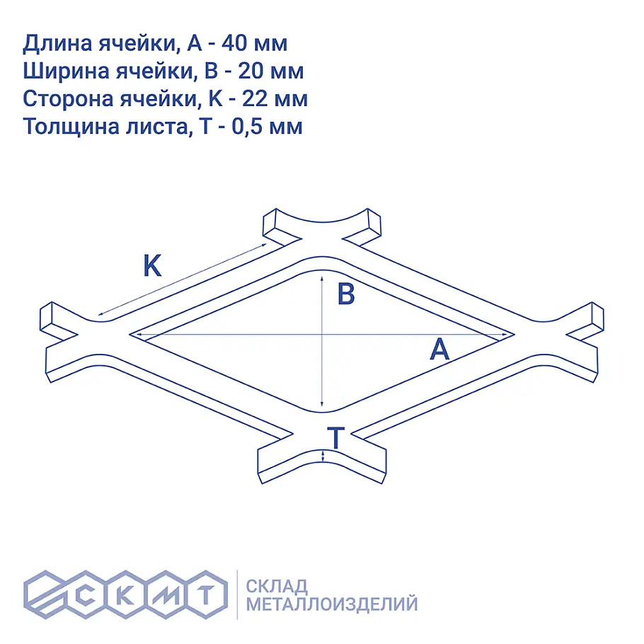 Оцинкованная цельнометаллическая сетка ЦПВС №40 представляет собой армирующее полотно с ромбовидными отверстиями размером 22х22 мм.