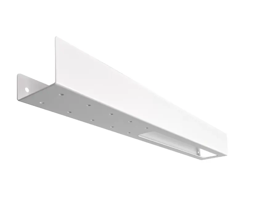 Полка в ванную комнату настенная изготовлена из прочного металла толщиной 1,5 мм и окрашена в белый оттенок полимерно-порошковой краской. Такому покрытию не страшна влага, оно устойчиво к царапинам и повреждениям. Закрепить полку в ванной несложно с помощью дюбелей и саморезов с заглушками, которые идут в комплекте.