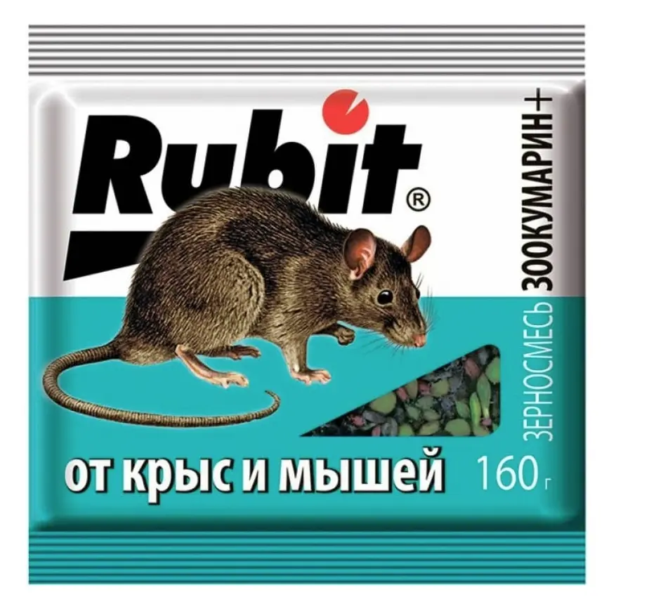Зерновая смесь от грызунов Rubit зоокумарин+ 160 г- это готовая эффективная приманка для истребления мышей и крыс.