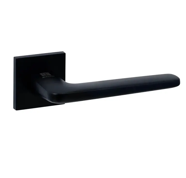 Ручка FRESCO на тонкой квадратной розетке выполнена в черном цвете. Материал изготовления Zamak и покрытие гальваникой обеспечивают сохранение внешнего вида и эксплуатационных свойств в течение длительного времени. Универсальное исполнение ручки предполагает ее установку практически на любую дверь.