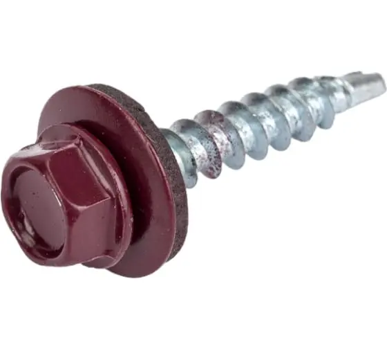 Саморезы с шестигранной головкой, шайбой, с резиновой уплотняющей прокладкой и сверлом на конце, позволяющим осуществлять монтаж без предварительного засверливания.