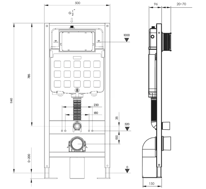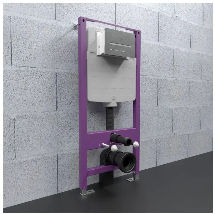 Инсталляция для унитаза – опорная часть системы. Это жесткая каркасная конструкция из стального профиля с защитным покрытием против коррозии. Она служит для крепления самого унитаза, его бачка и гидравлической обвязки.