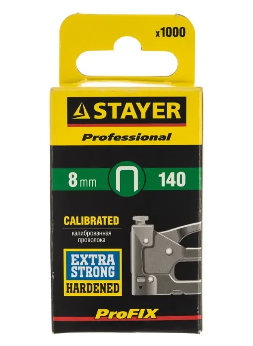 Скобы "PROFI" STAYER 31610-8 применяются при работе степлерами. Предназначены для закрепления пленки, тканей, листовых материалов древесного происхождения к основе из дерева, ДСП и др. Изготовлены из углеродистой стали и закалены.