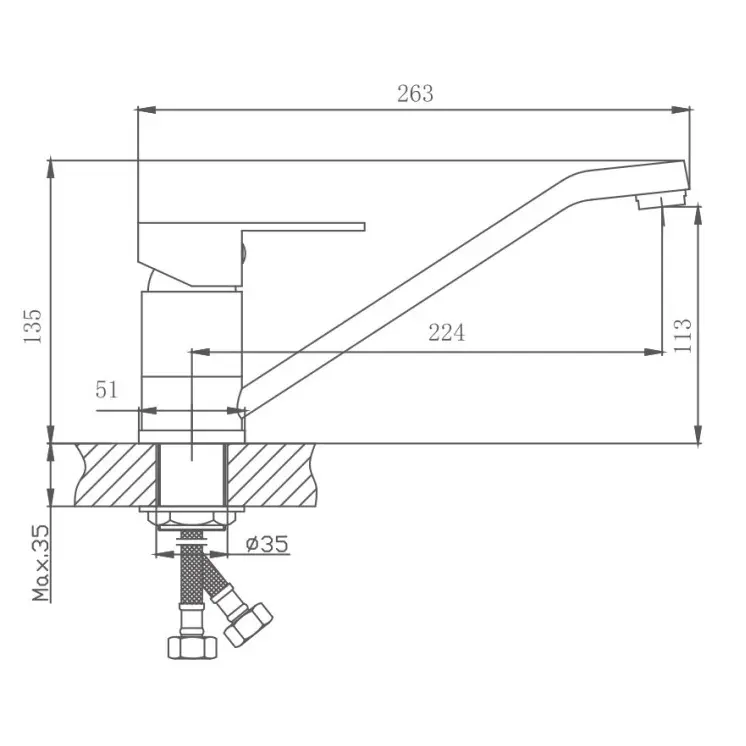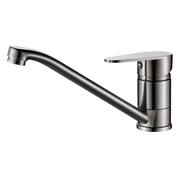 Смеситель Haiba HB42802 сталь для кухни. Рычажный смеситель предназначен для горизонтального крепления. Это универсальная модель, в современном стиле. Рычажный смеситель для кухни с поворотным изливом изготовлен из нержавеющей стали. Смеситель оборудован керамическим картриджем 35мм, который обеспечивает точную настройку напора воды. Стандарт подводки: 1/2. Тип подводки: гибкая. Поворотный излив оснащен аэратором. Аэратор существенно понижает уровень шума. Комплектация: смеситель, инструкция. Высокоточные линии литья и обработки, а также использование современных материалов позволяют гарантировать высокий уровень качества продукции. Продукция отличается хорошим соотношением цены и качества.