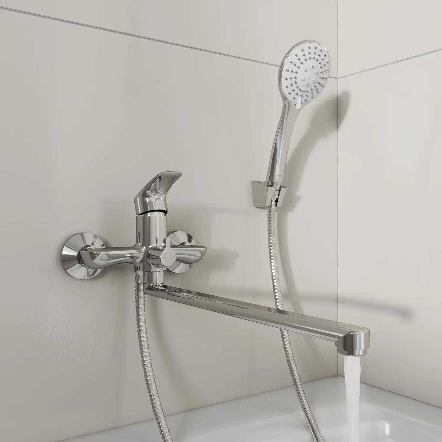 Смесители, использующиеся исключительно для душа. В таких моделях нет излива, а вода сразу поступает в душевую лейку. Этот вариант прекрасно подходит для душевых кабин. Он может использоваться и в ванной, если излив мешает пользователю.