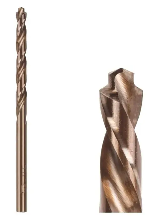 Назначение: для сверления отверстий в конструкционных углеродистых и легированных сталях, нержавеющих и жаростойких сталях прочностью до 1000 N/mm2, титана и его сплавов, бронзы, латуни, цветных металлах, чугуне, твердом пластике. Сверло спиральное изготовлено из высококачественной быстрорежущей стали с уже вышлифованным профилем. Выход стружки легче, температура нагрева и биение сверла в патроне меньше, стойкость режущей части выше. Отверстия имеют высокую точность. Подточка поперечных режущих кромок позволяет начинать сверление без предварительного засверливания центрирующим сверлом или кернения. Повышенный ресурс использования. Обладают повышенной производительностью, износостойкостью и красностойкостью. Максимально точное и аккуратное сверление. Дополнительная твердость и повышенная теплостойкость за счет содержания в сплаве кобальта. Подходят для профессионального использования.