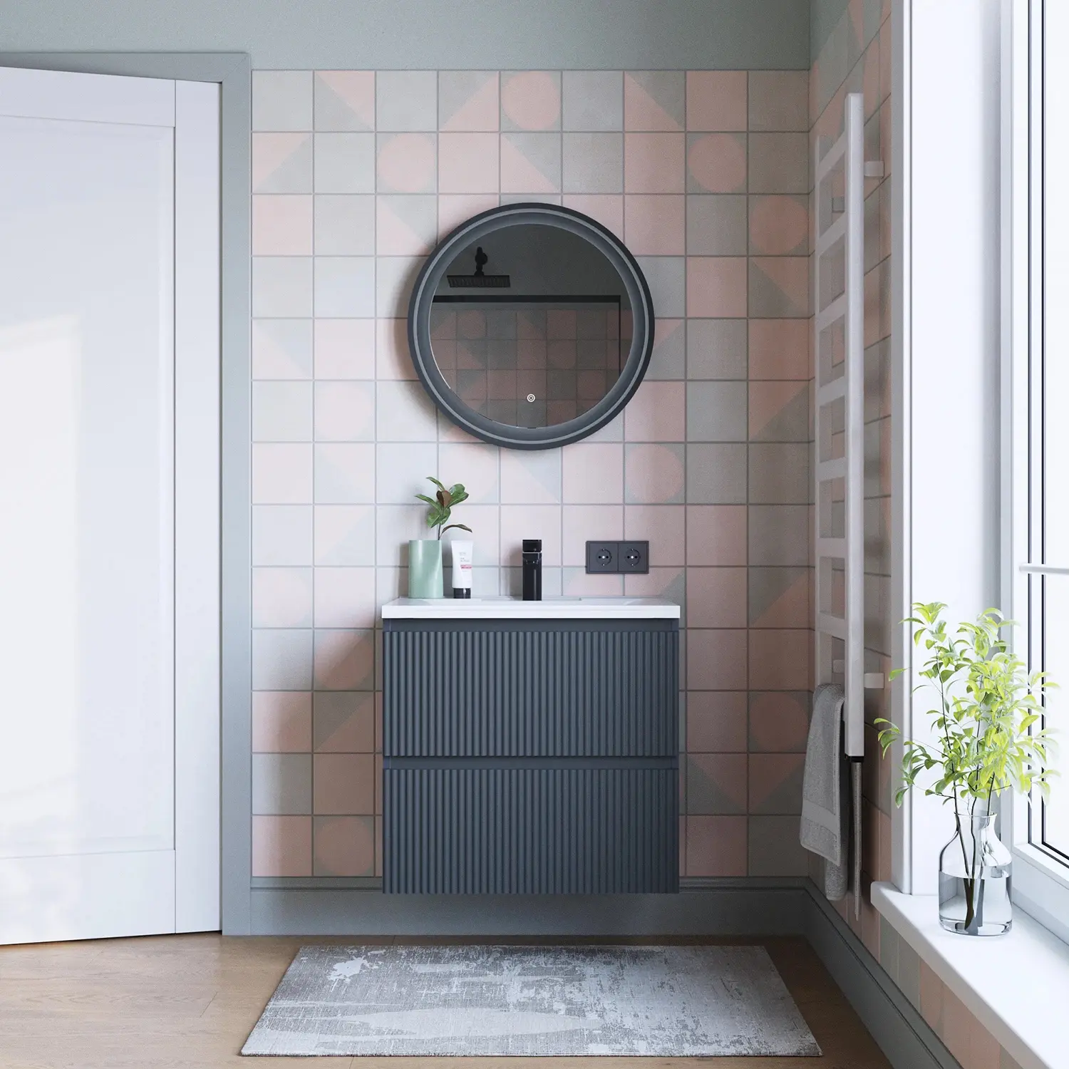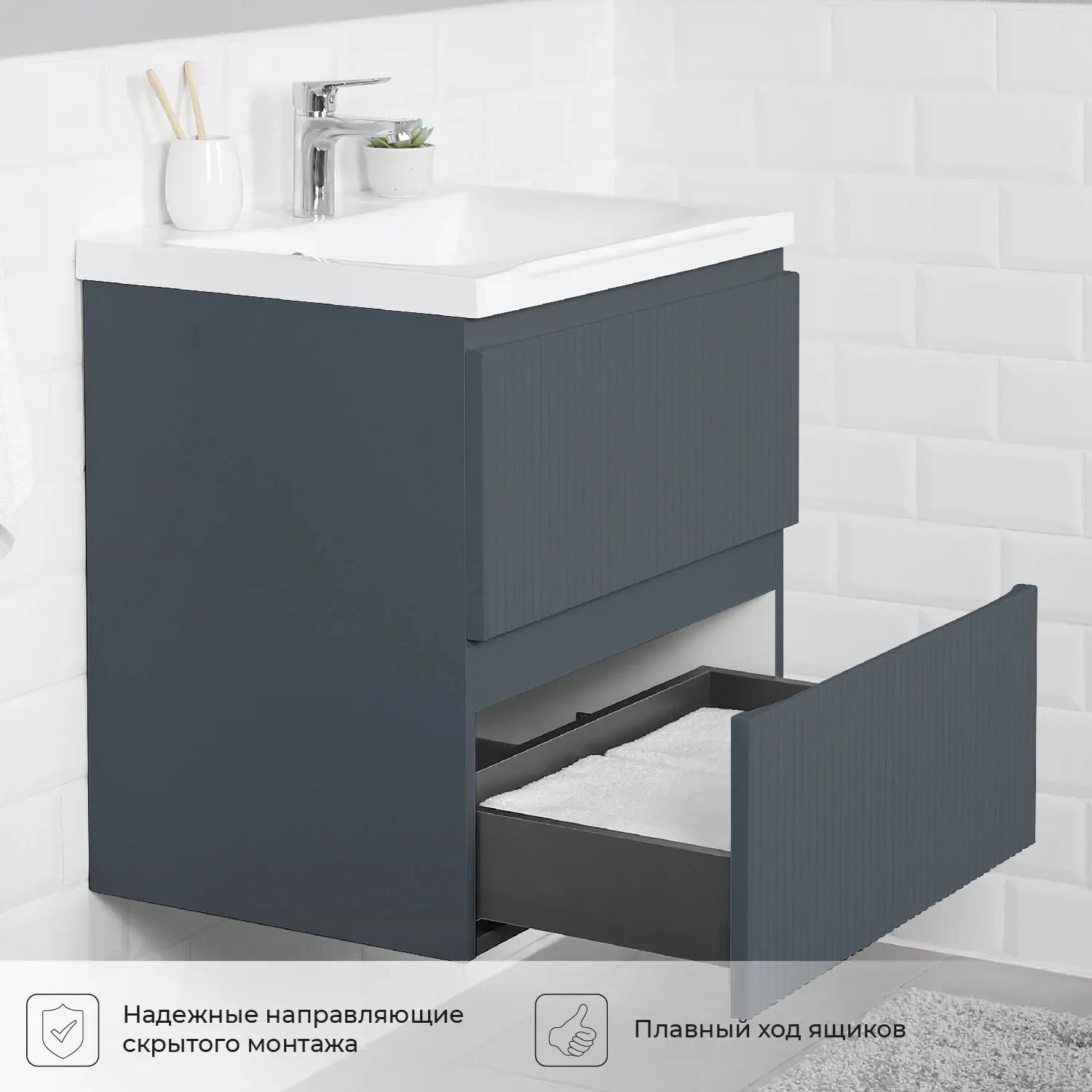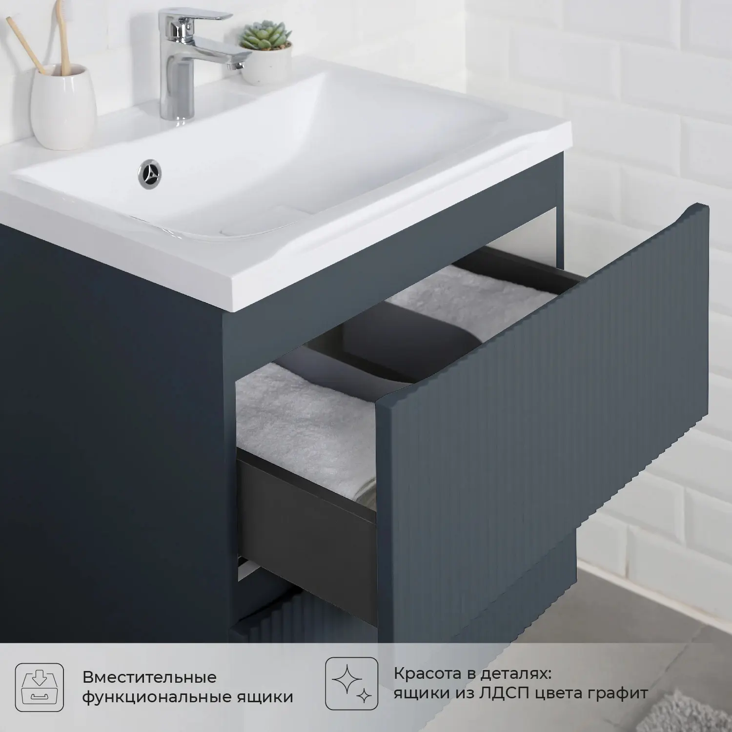 Один из вариантов организации умывальника как интерьерного элемента ванной – тумба с раковиной. Это отличный вариант для экономии пространства, имеющий эстетическую функцию. Такая конструкция позволяет спрятать все коммуникации и удобно расположить предметы гигиены в санузле.
