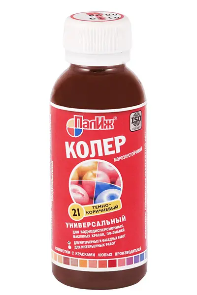 Применяется для колеровки красок, эмалей, лаков, лазурей для дерева, штукатурок и затирок на водно-дисперсионной и органической основах.