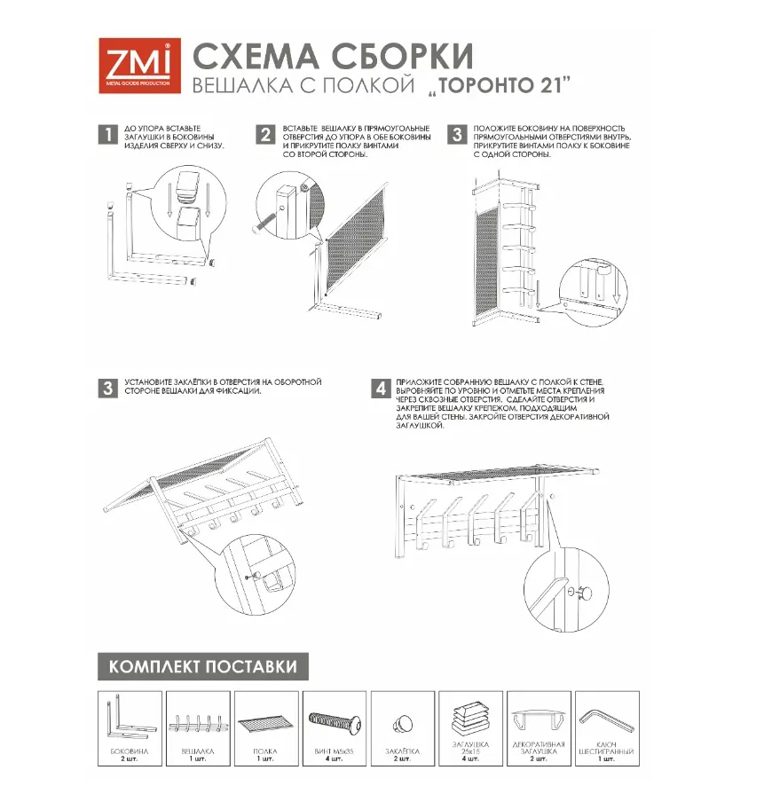 Настенная вешалка с полкой в стиле лофт "Торонто 21" от российского производителя "ЗМИ" создана для хранения верхней одежды в доме, офисе и на даче.